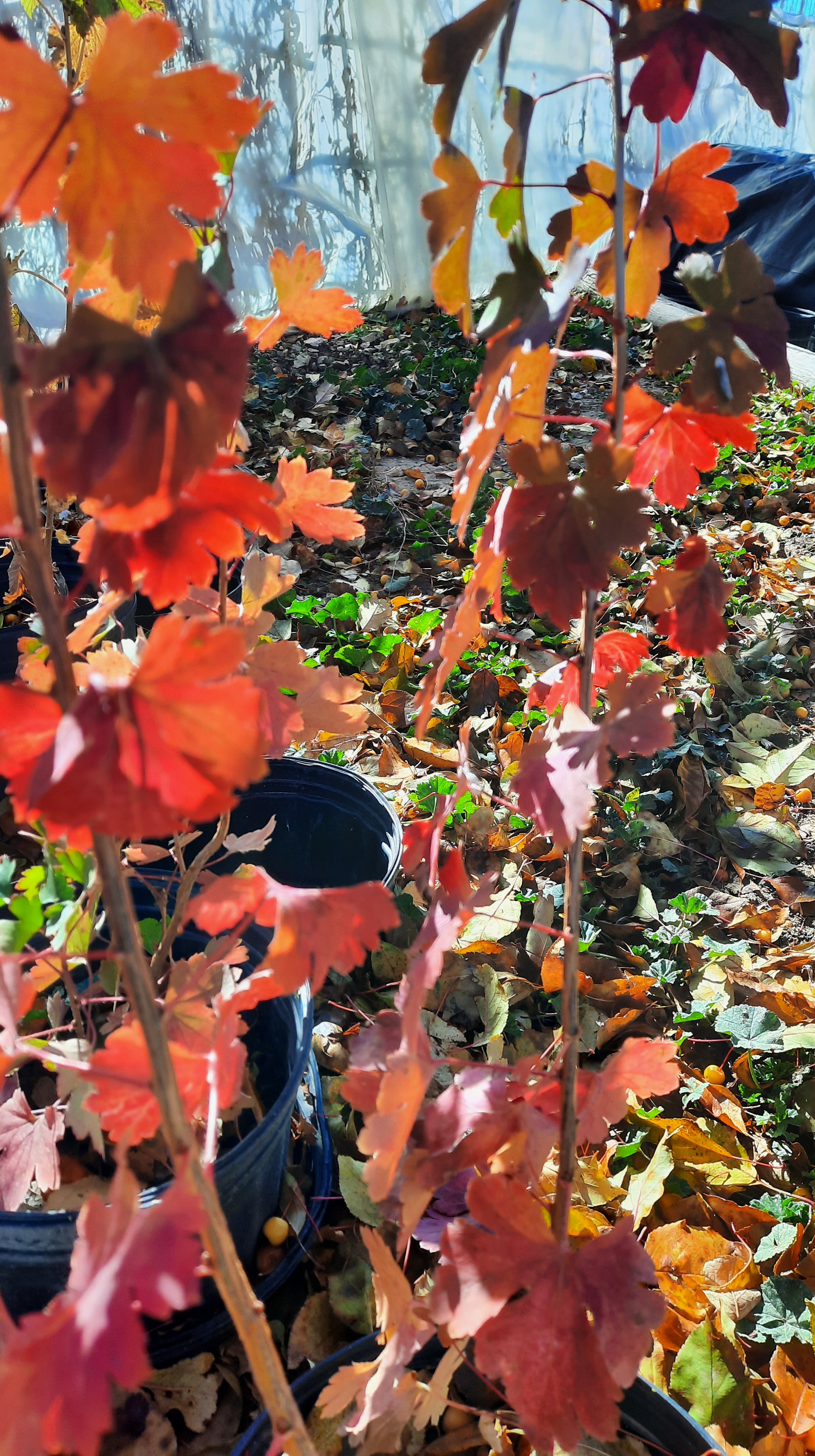 In the fall, the leaves shut down in vibrant reds and golds and drop, creating a layer of perfect mulch. The first rains and snows soak and compact the leaves. Against the still-warm earth, the bottom layer begins immediately to decay, sticking together and sealing the season’s fertilizer and organic matter and moisture around the plant. Whenever the earth is not frozen – warm weeks or snow melt – the decay continues. Natural mulch and future compost, increased by the birds to pure gold for the soil.